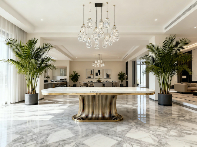 Luxuriöser Esstisch aus Marmor und goldfarbenem Edelstahl – der Inbegriff von Opulenz ✨